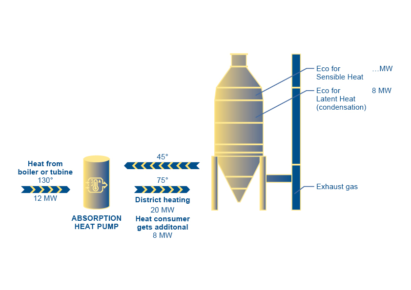 Absorption heat pumps can increase the efficiency and economy of industry, waste combustion and heating (power) plants when waste heat flows at low and high temperature levels are available. In particular for feeding in to district heating grids close by.