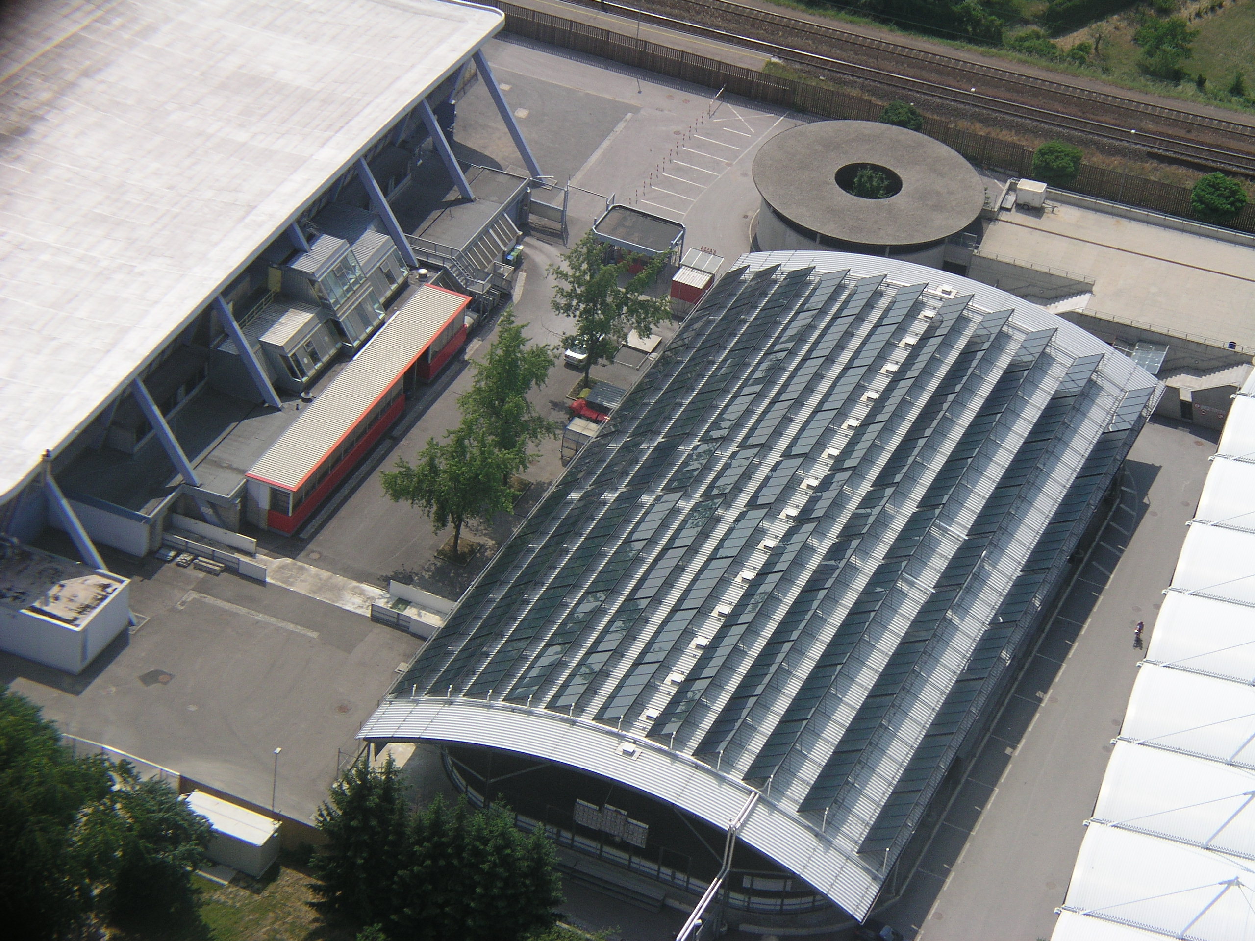 Due to the fact that the energy generated by the solar system is constantly drawn off by the district heating system, there is no need for expensive buffer storages. The total collector area is 1.407 m2 – mounted on the roof of the skating hall of the Arena in Graz-Liebenau. A transfer station located in the mechanical room of the Arena manages the transfer of energy from the solar circuit to the district heating grid.