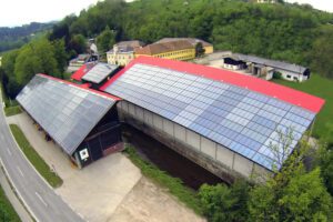 Mit 842 m² Solarkollektoren auf dem Dach kann ein großer Teil des Wärmebedarfs der Gemeinde Vransko in Slowenien gedeckt werden.