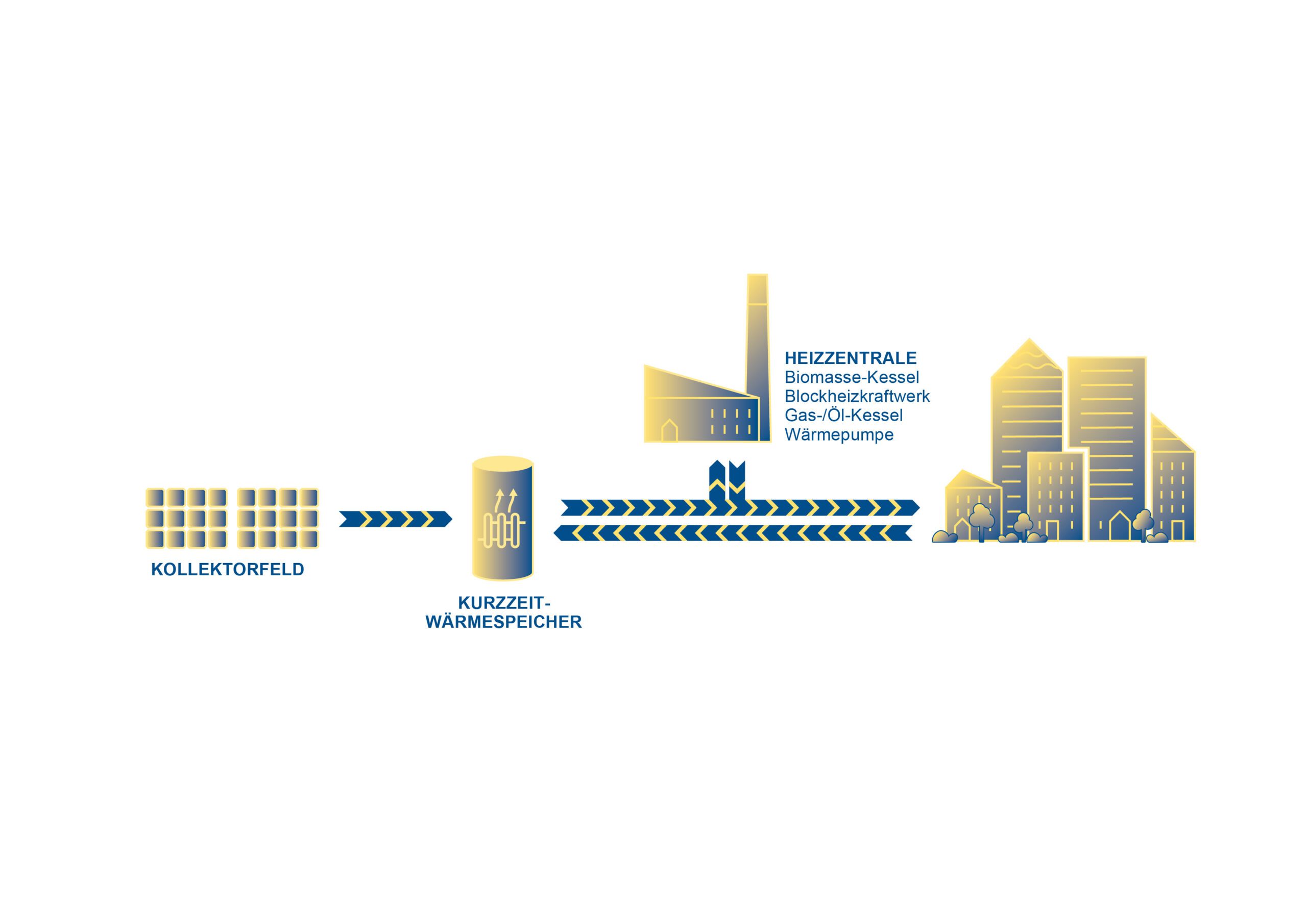 Solare Fernwärme speist Wärme aus solarthermischen Kollektoren in Fernwärmenetze ein. Solare Fernwärmelösungen wurden bereits in kleinen Dörfern bis hin zu Städten mit mehreren hunderttausend Einwohnern realisiert. Zu den innovativen Konzepten von SOLID gehören die Speicherung und das Lastmanagement,