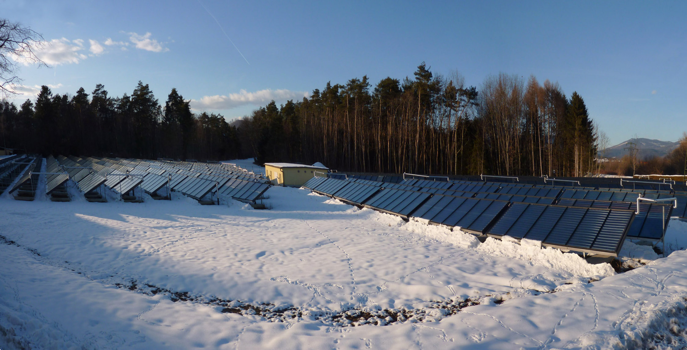 Das Kollektorfeld mit einer Gesamtkollektorfläche von 3.855 m² ist freistehend auf dem Gelände des Wasserwerkes Andritz installiert.
